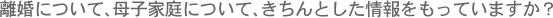 ・離婚関連の法律や慰謝料・親権など離婚のイロハがわかる! ・母子家庭に役立つ制度・情報をわかりやすく説明! ・経験談でイメージがわく!勇気もわく! ・子どもとのつきあい方や子どもインタビューで子どもの気持ちがわかる!